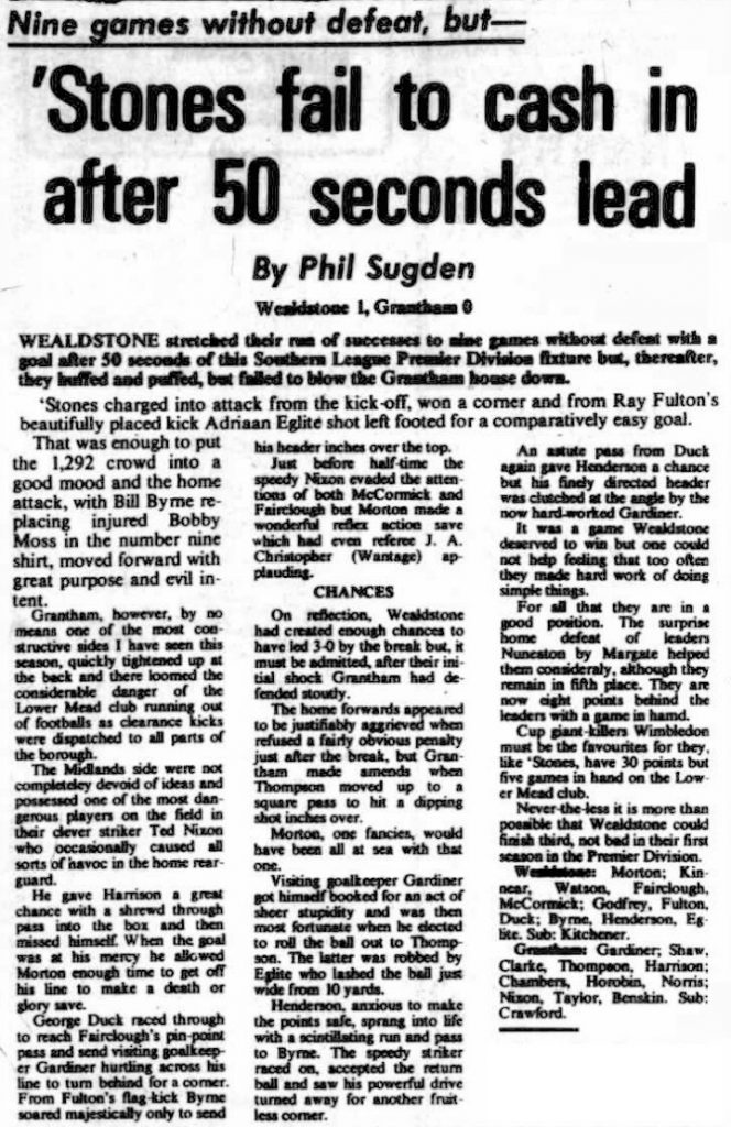 Wealdstone 1 – 0 Grantham