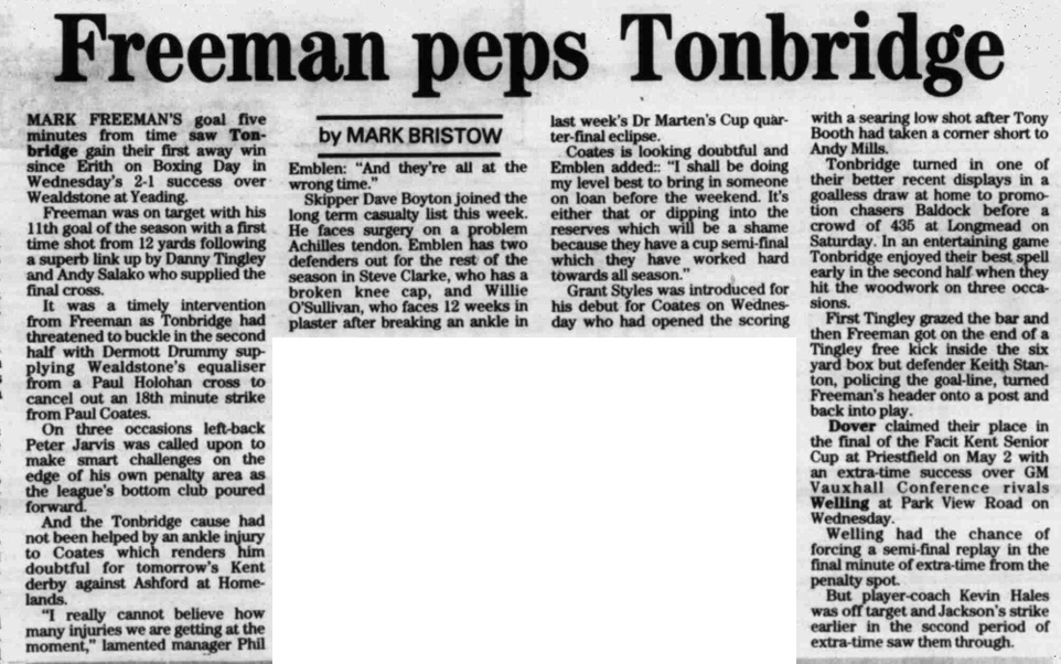 Wealdstone 1 – 2 Tonbridge