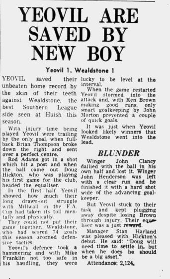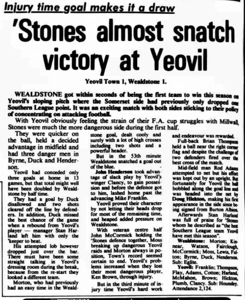 Yeovil Town 1 – 1 Wealdstone