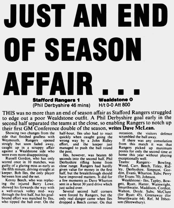 Stafford Rangers 1 – 0 Wealdstone