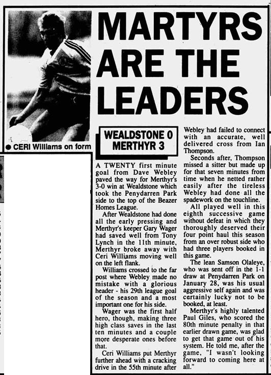 Wealdstone 0 – 3 Merthyr Tydfil
