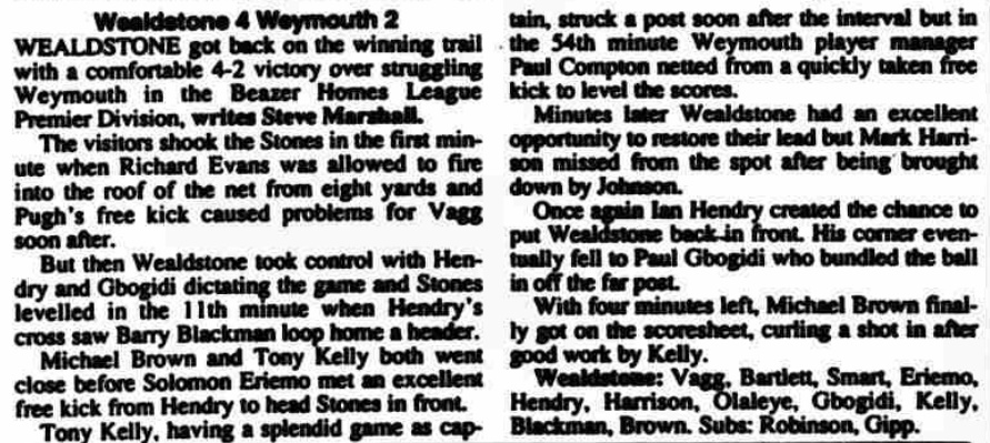 Wealdstone 4 – 2 Weymouth