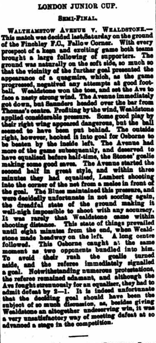 Walthamstow Avenue 1 – 2 Wealdstone