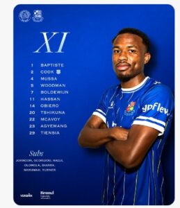 Shots lineup: 41. Coniah Boyce-Clarke, 6. Theo Widdrington, 10. Josh Barrett (Ghandour 86), 15. Christy Grogan, 17. James Henry (Hargreaves 45), 19. Ryan Hill (C), 24. Charlie Warren, 25. Will Nightingale, 33. Sam Inwood, 34. Dejan Tetek (Jones 60), 42. Matt Penney (Armitage 90)