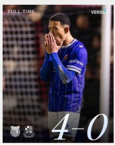 The Mariners made it 3-0 on 23 minutes after a great move led to Vernam getting the ball on the left. He pulled it back across the six-yard line and WALKER was in place to convert from close range.