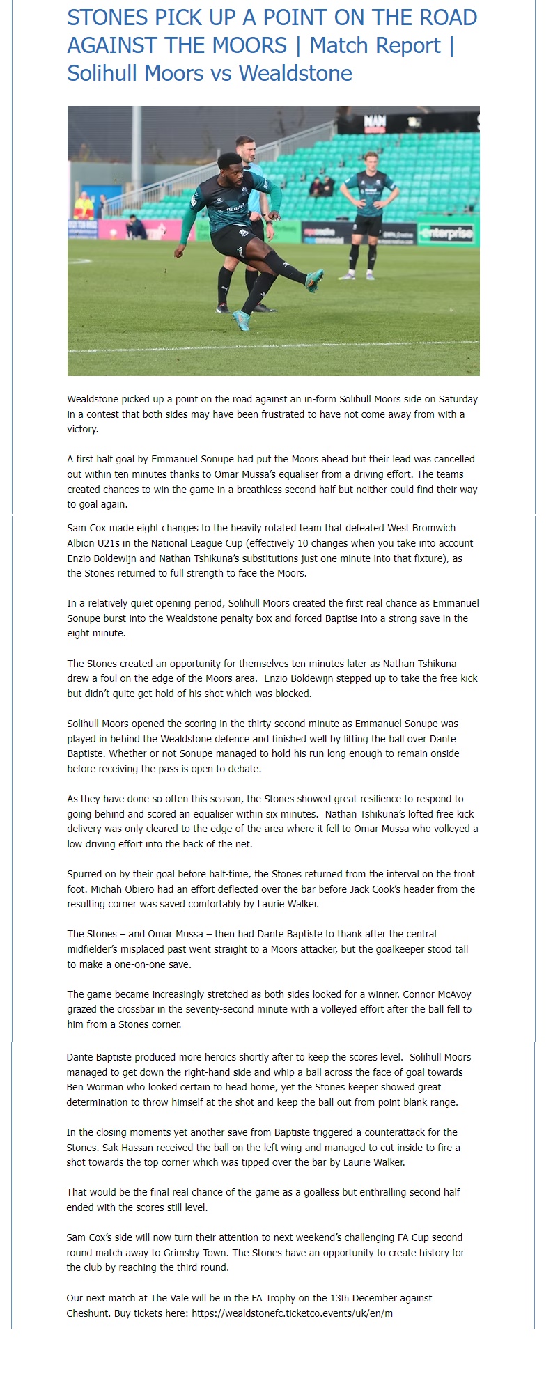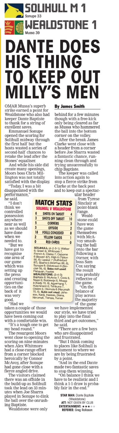 Solihull Moors 1 – 1 Wealdstone