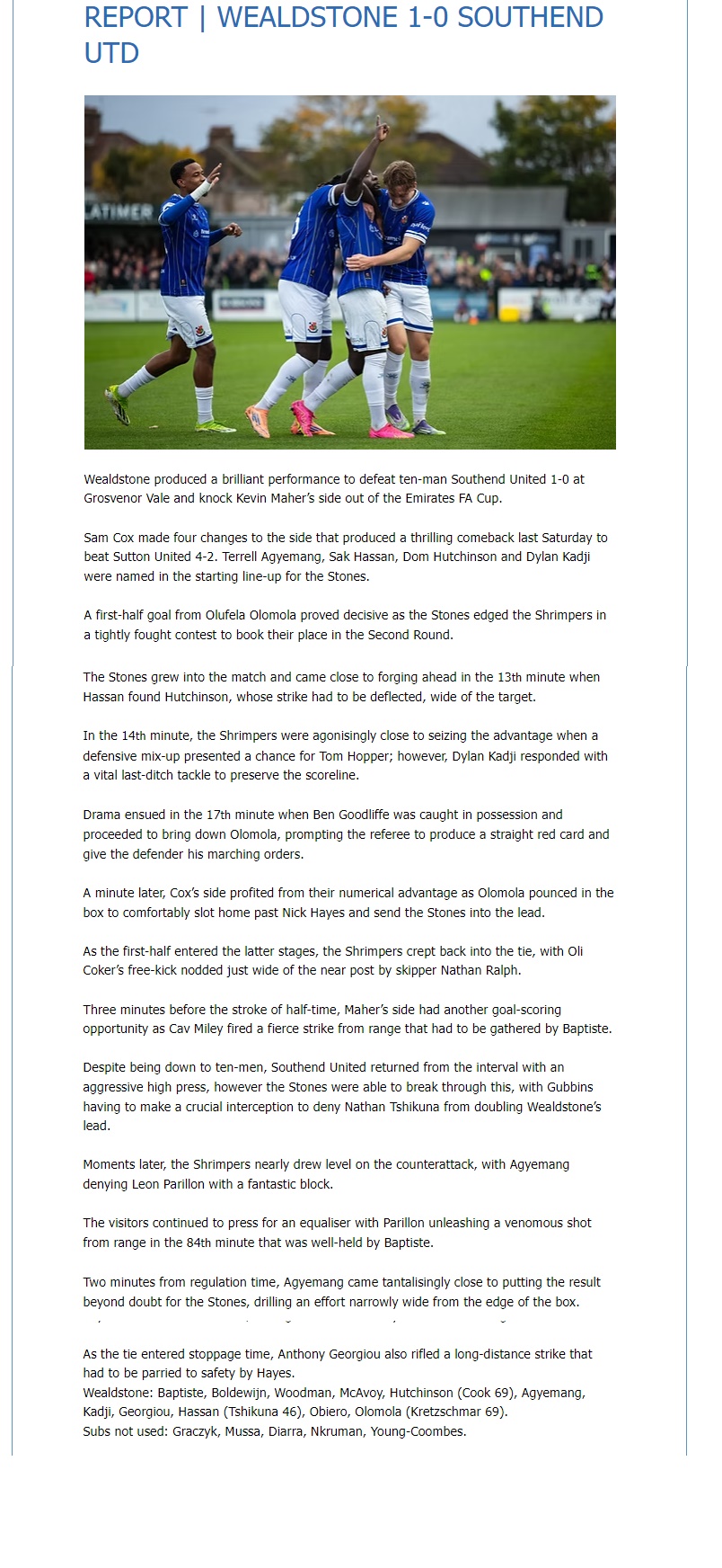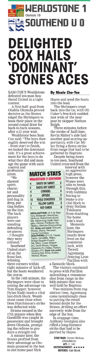 Sam Cox Post Match Interview HERE