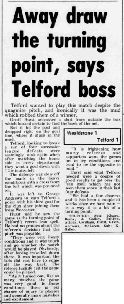 Wealdstone 1 – 1 Telford Utd