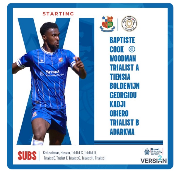 Midway through the half, MK Dons were forced into a change after a strong tackle on Nathan Thompson, with the defender eventually replaced by Keon Lewis-Burgess.