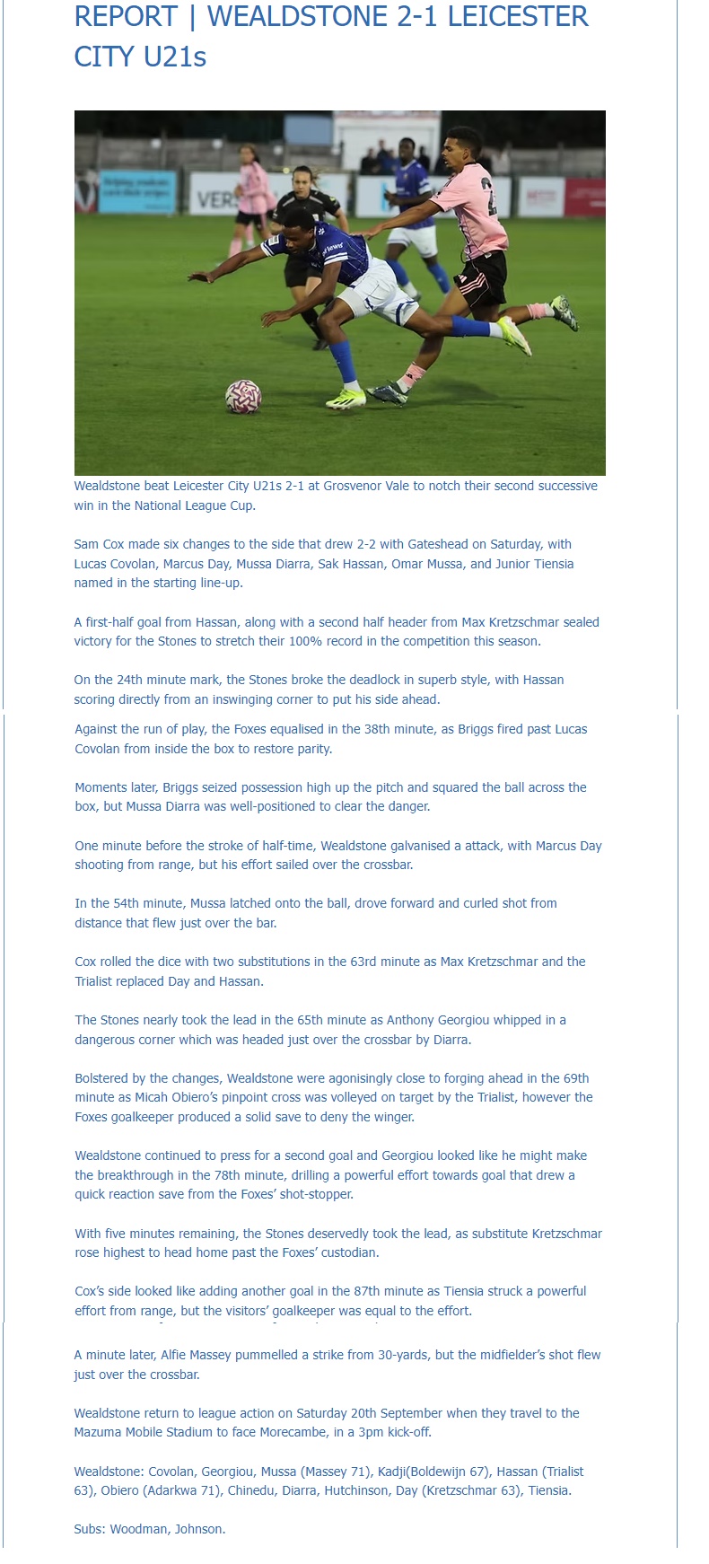 Sam Cox Post Match Interview HERE