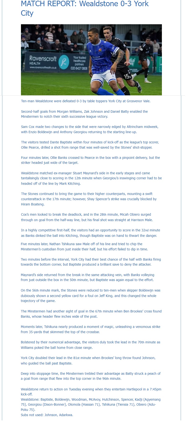 Sam Cox Post Match Interview HERE