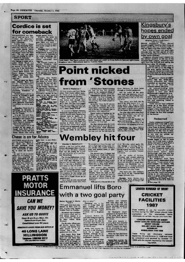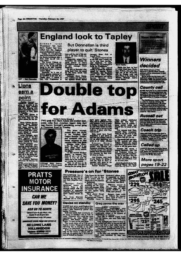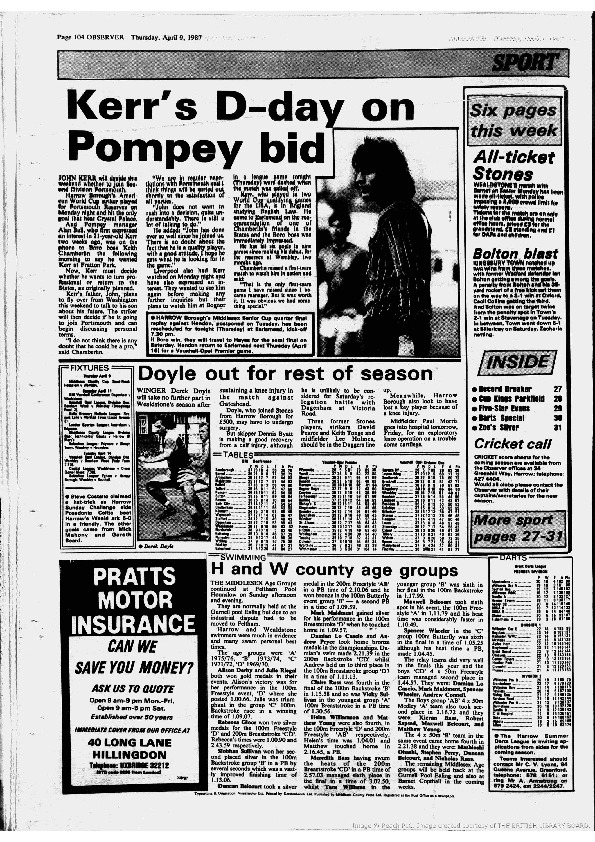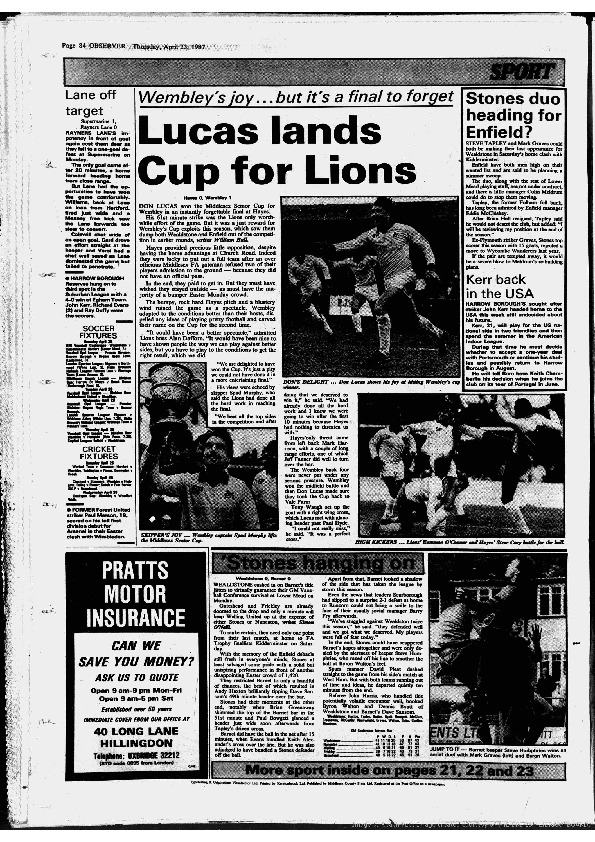 Harrow Observer – Sport – Season-by-Season – 1986-87