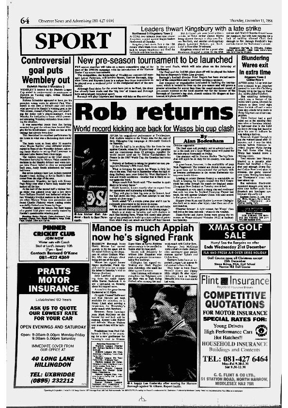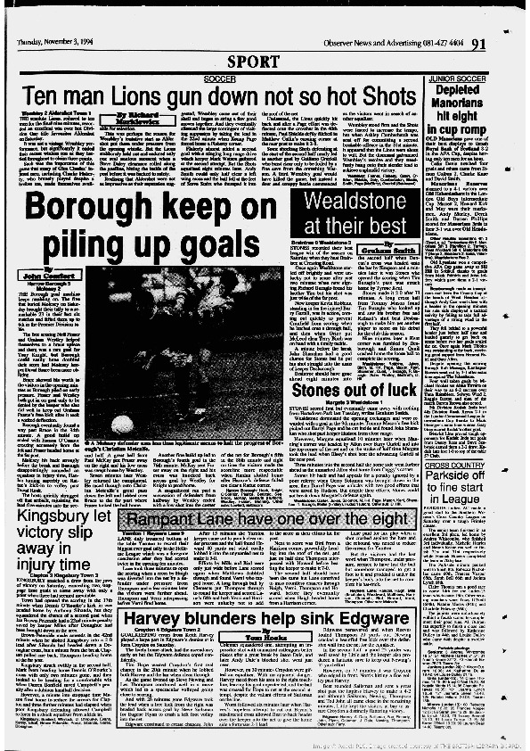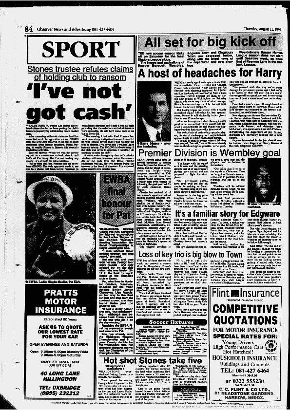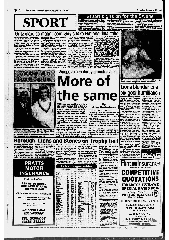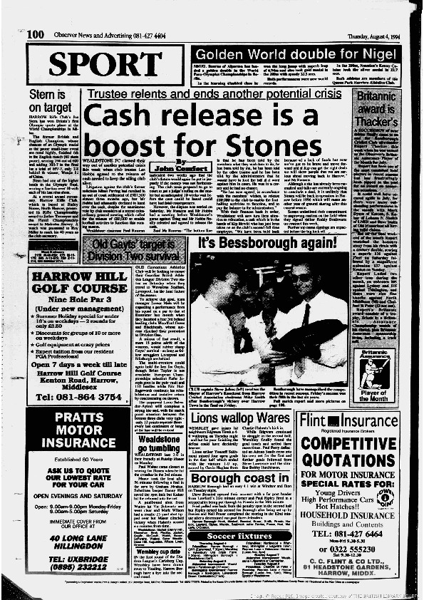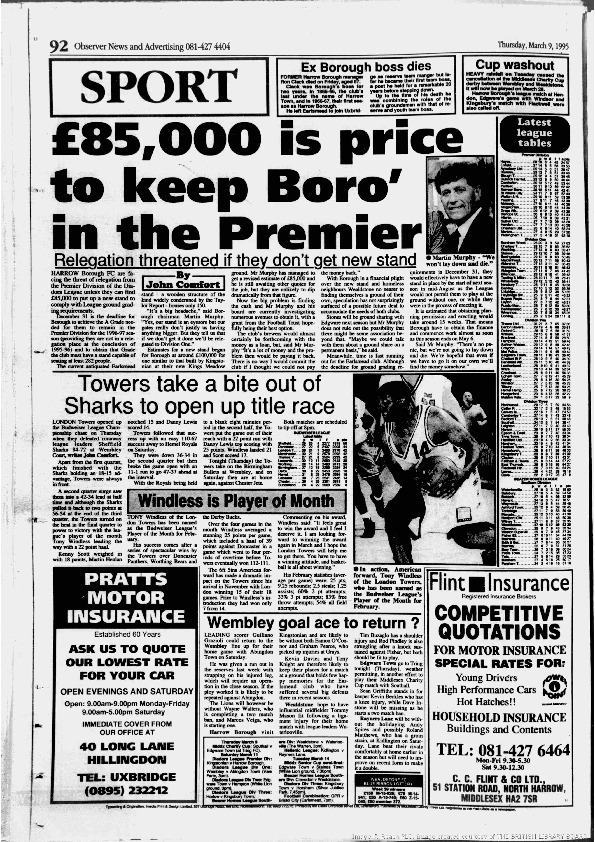 Harrow Observer Sport – Season-by-Season -1994-95