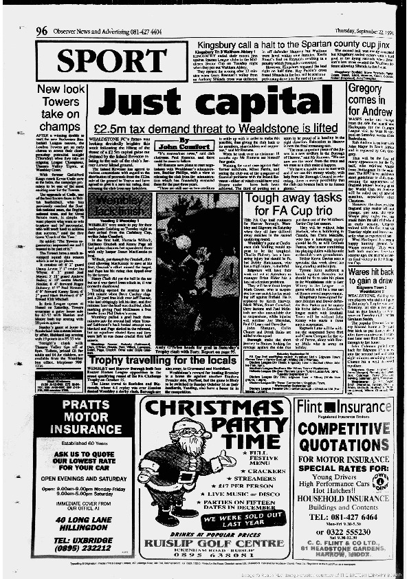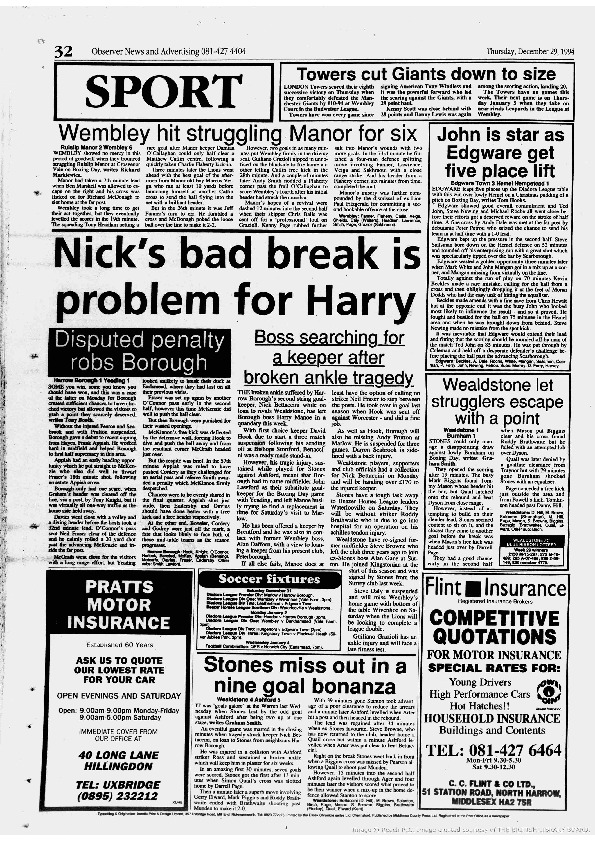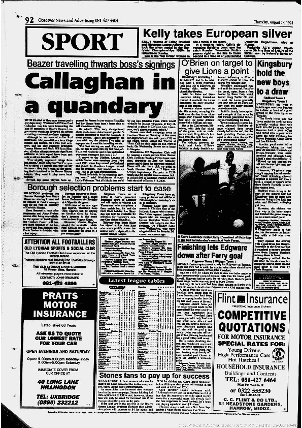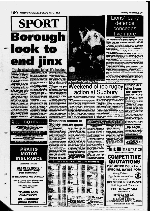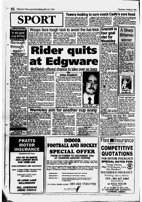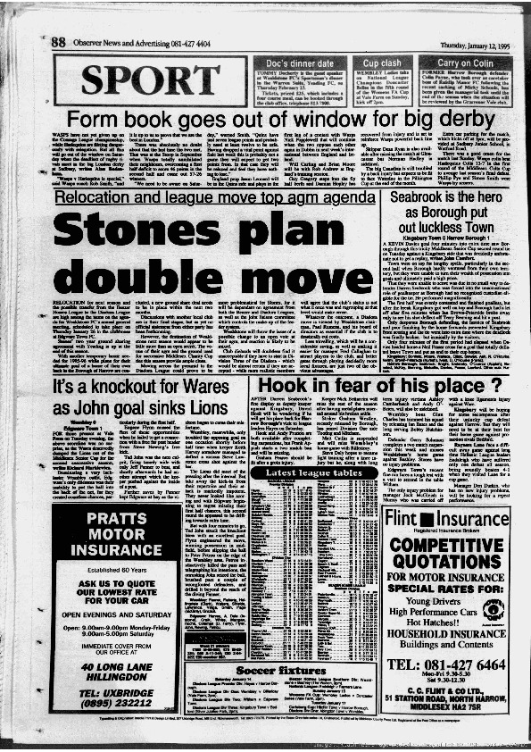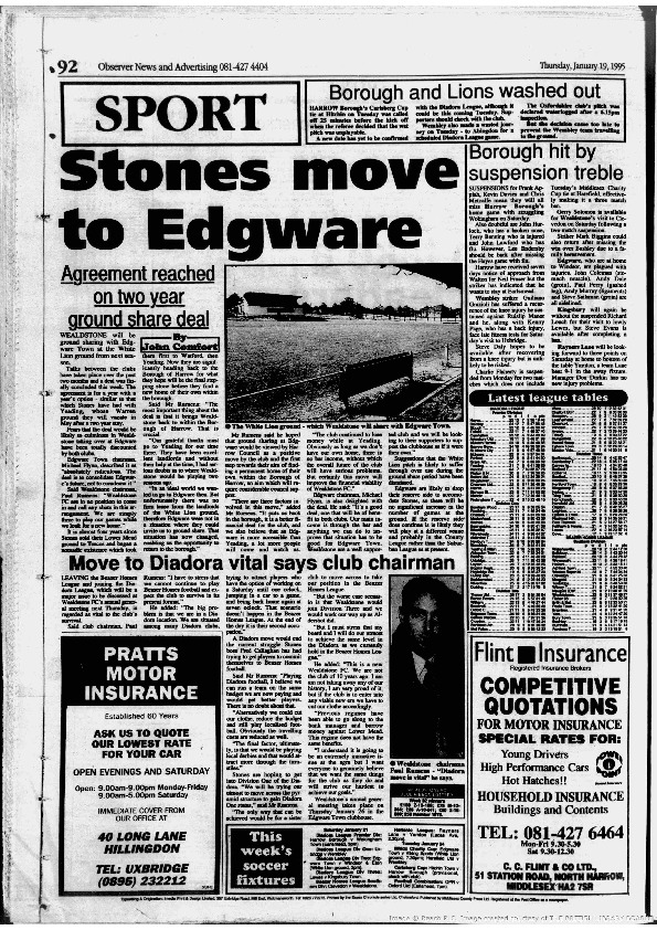 Harrow Observer Sport – Season-by-Season -1994-95