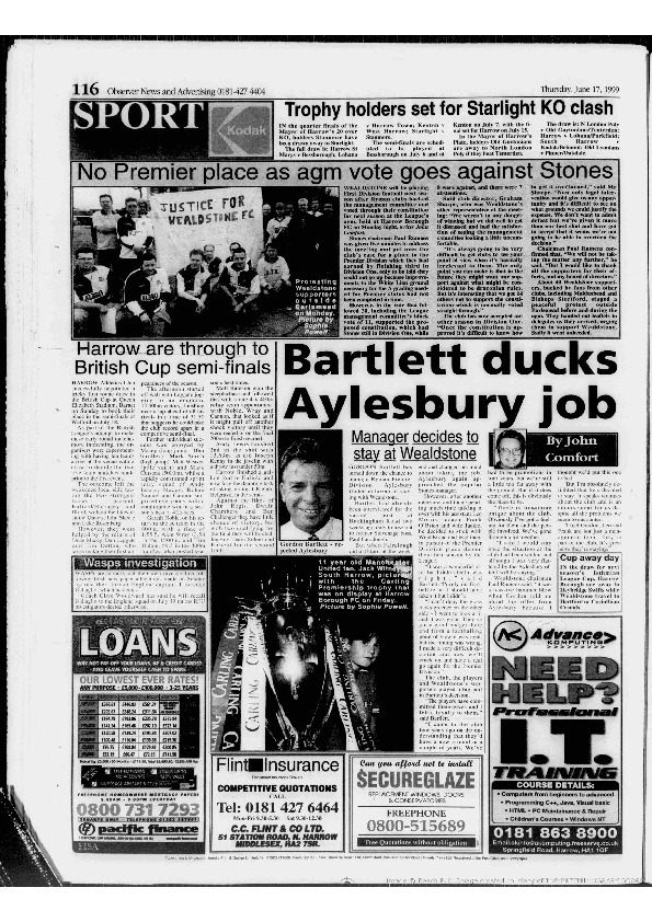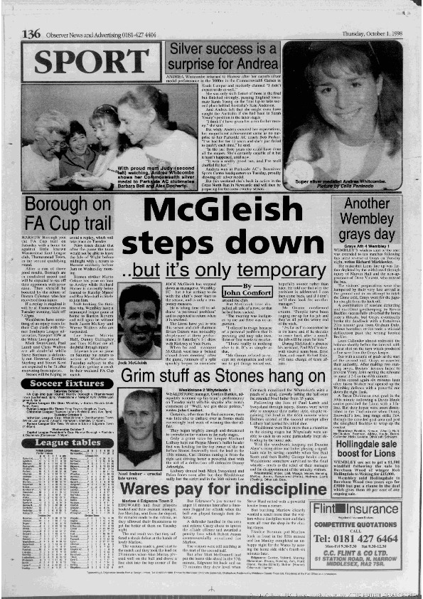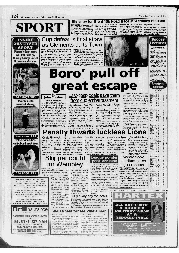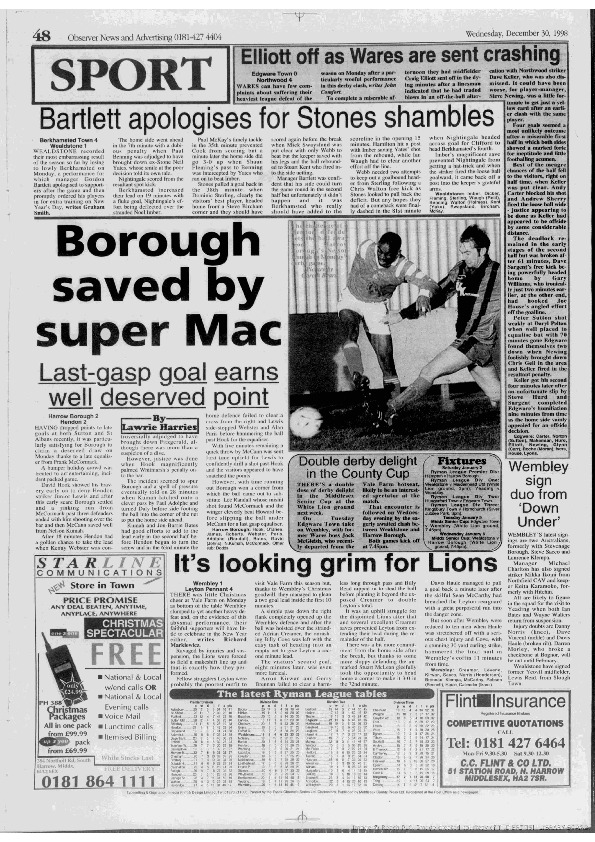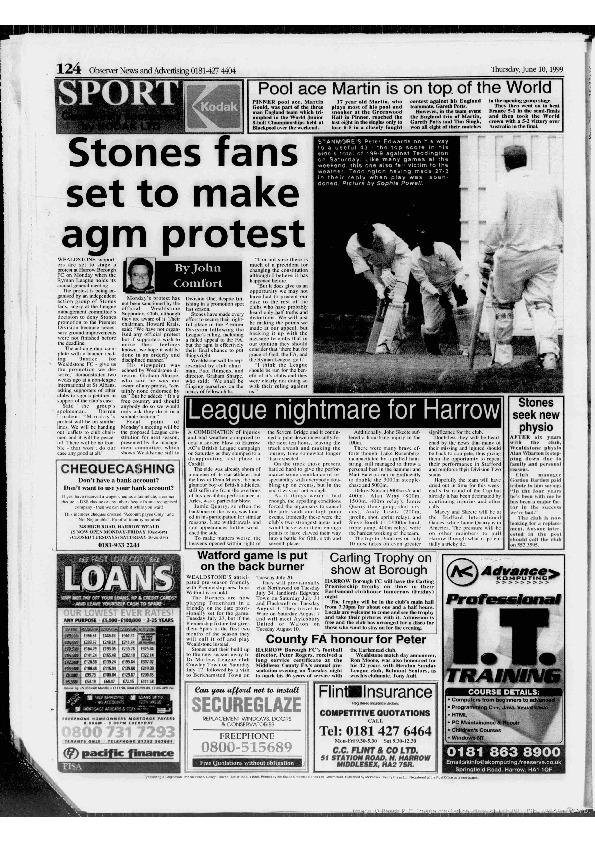 Harrow Observer -Sport – Season- by-Season – 1998-99
