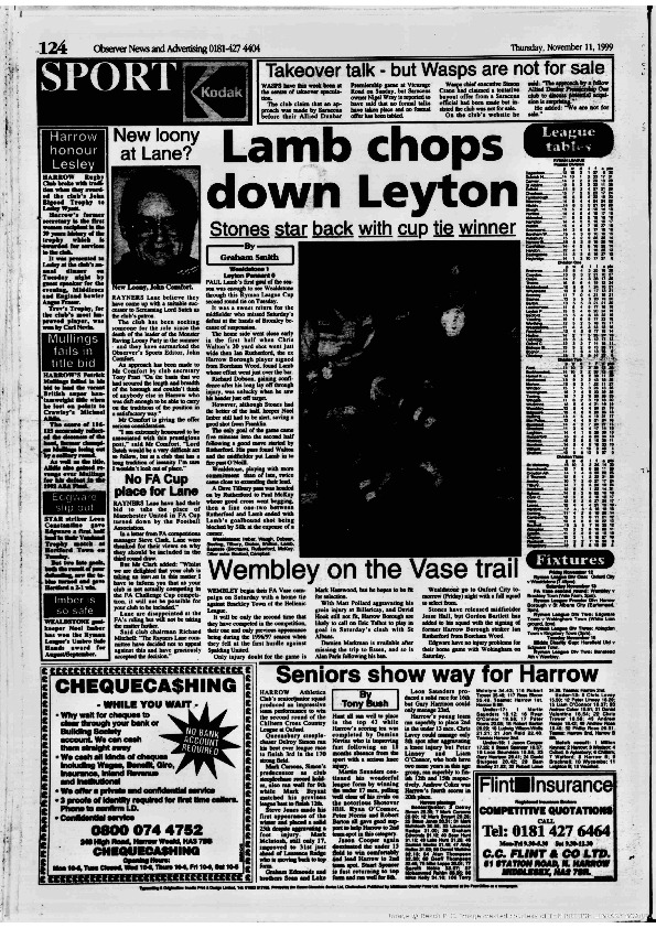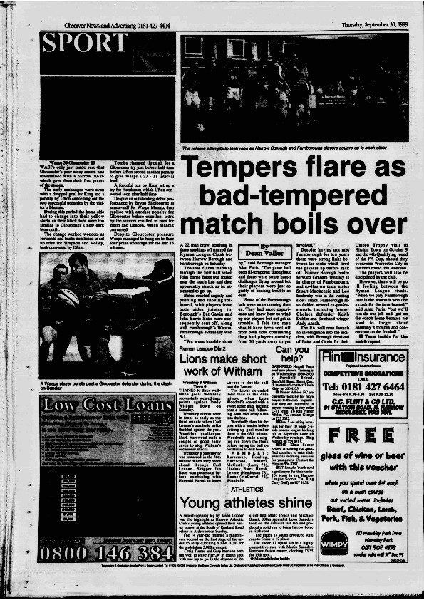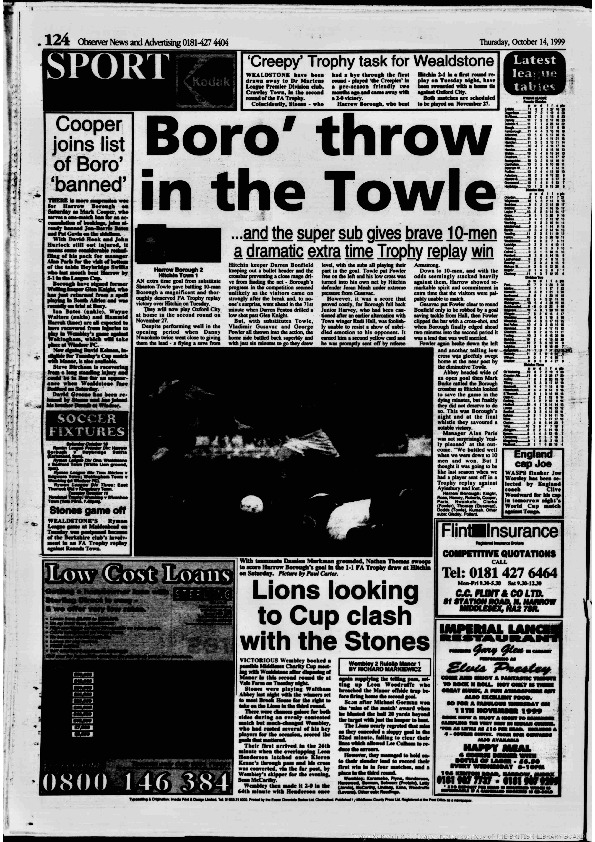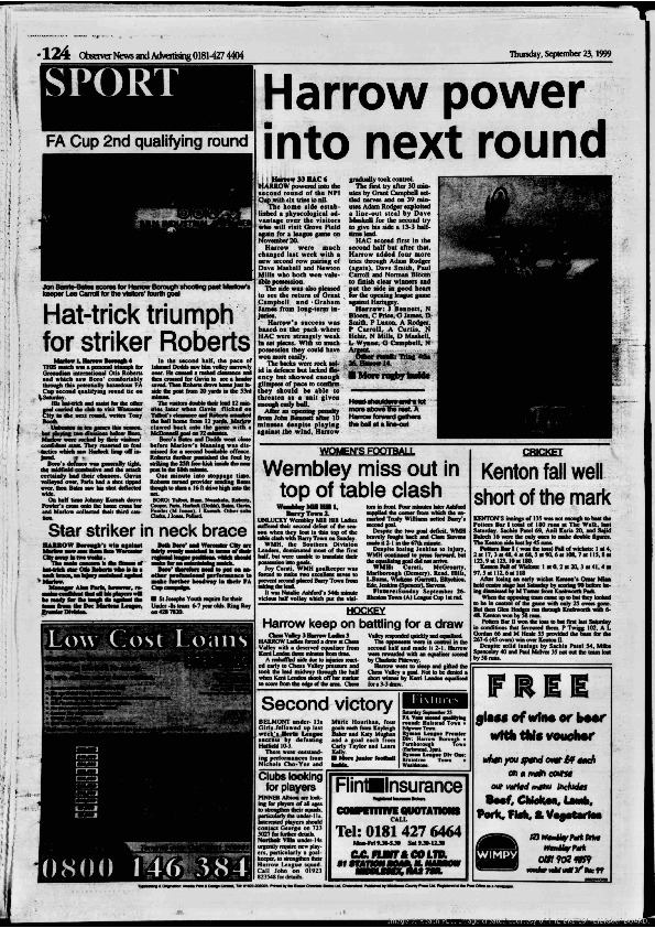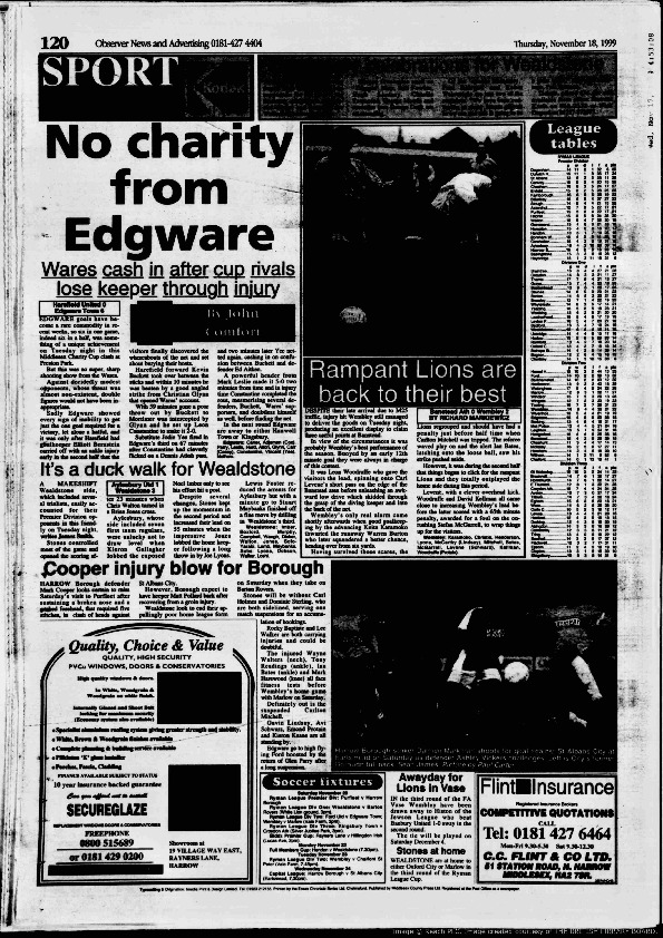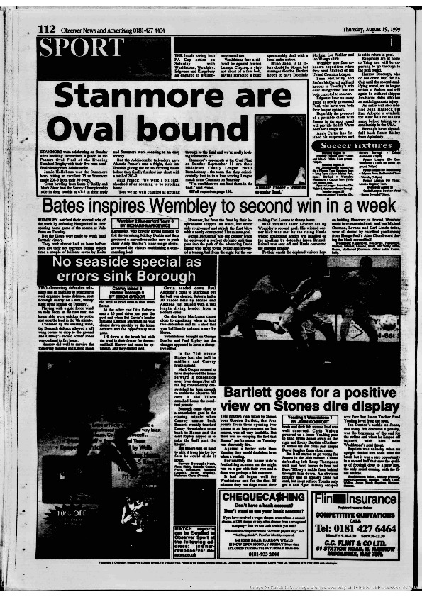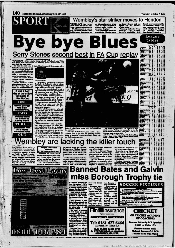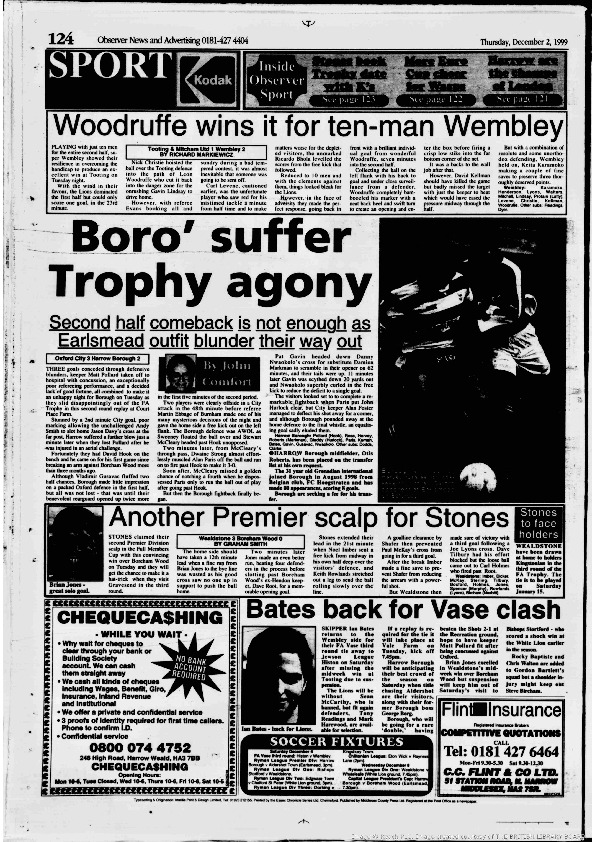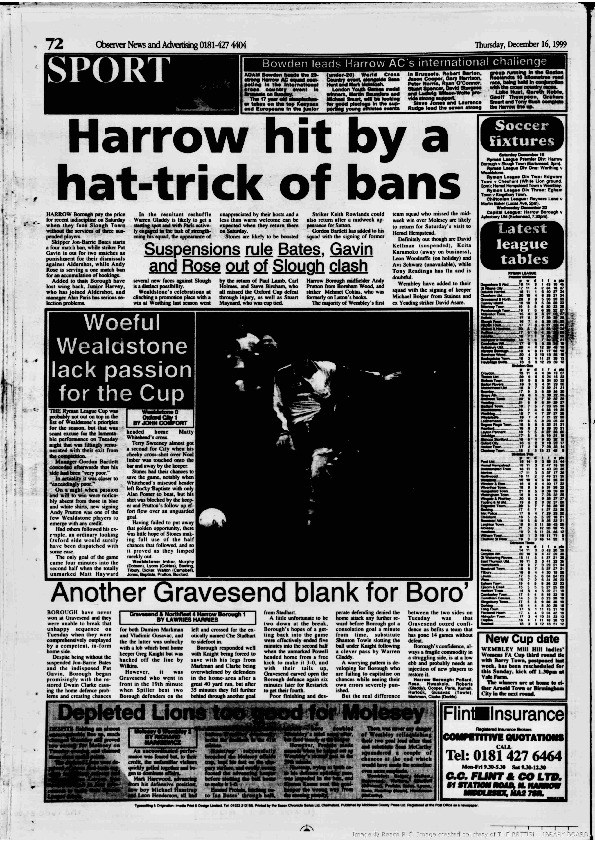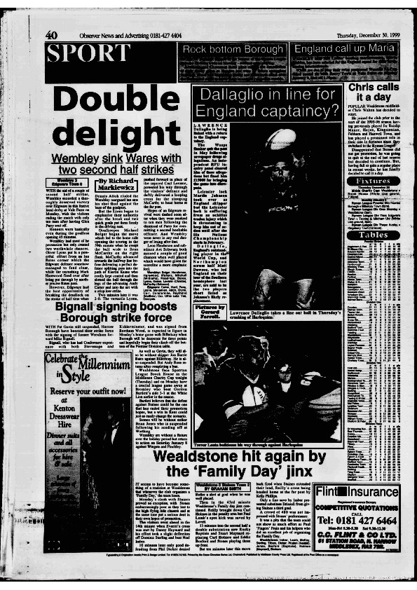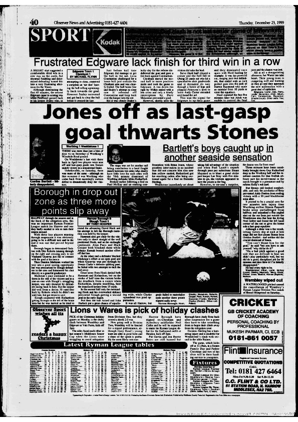 Harrow Observer -Sport – Season- by-Season – 1999….