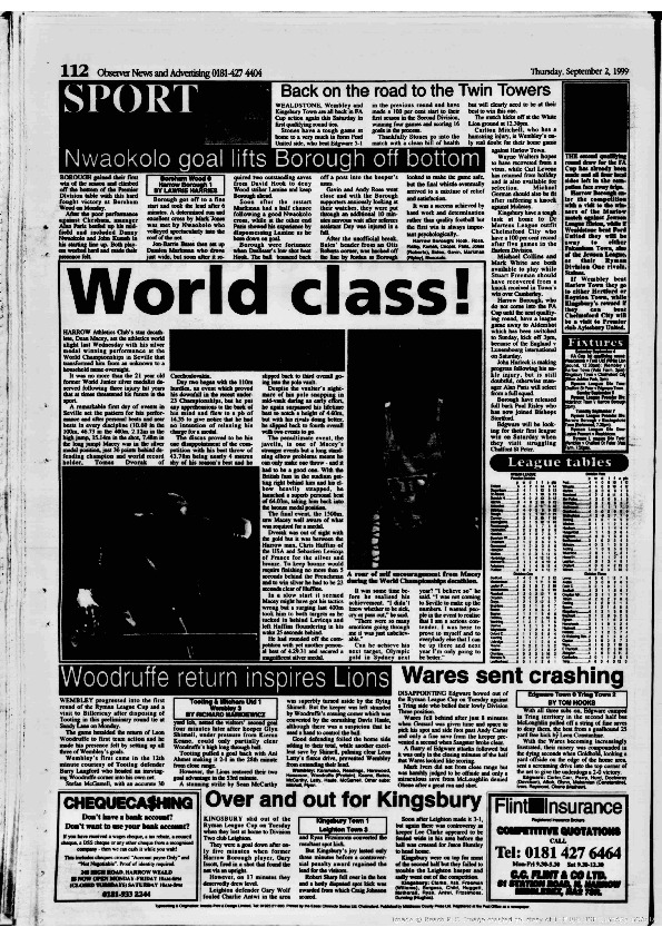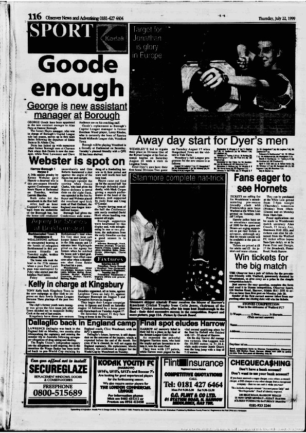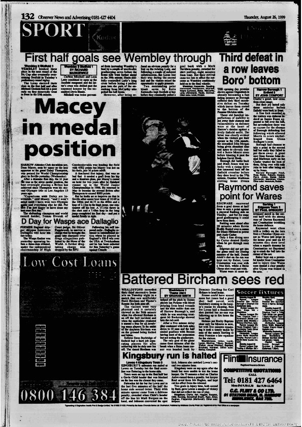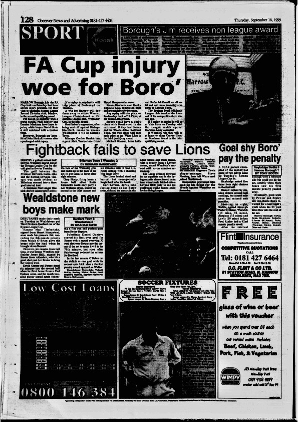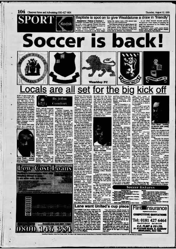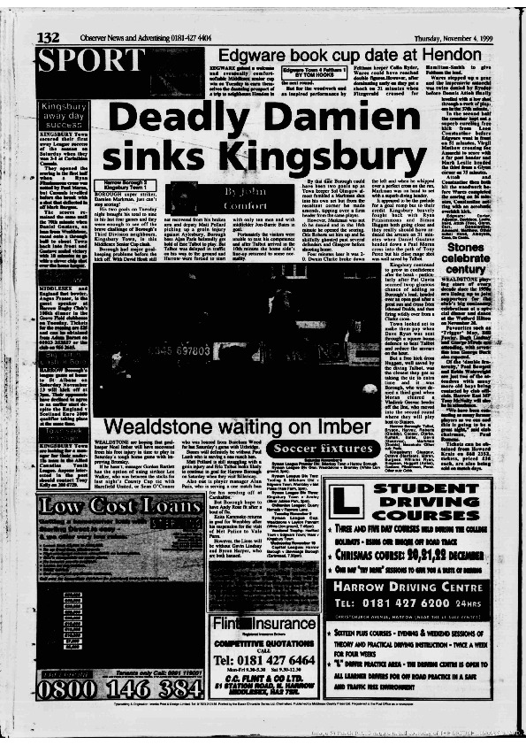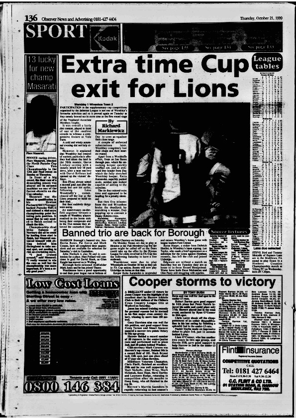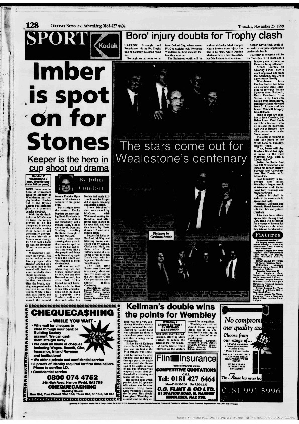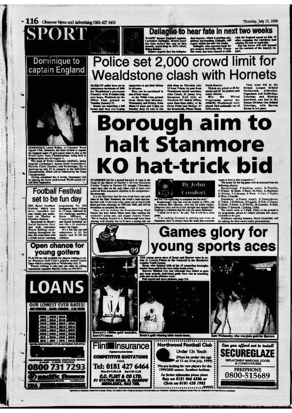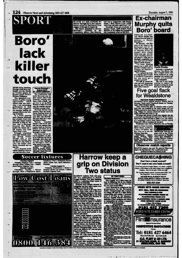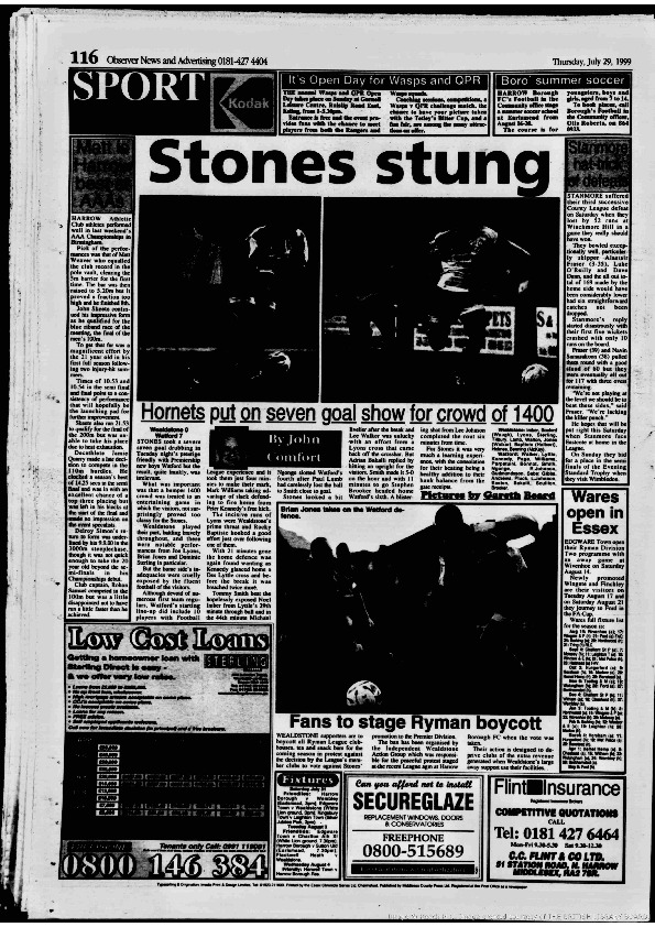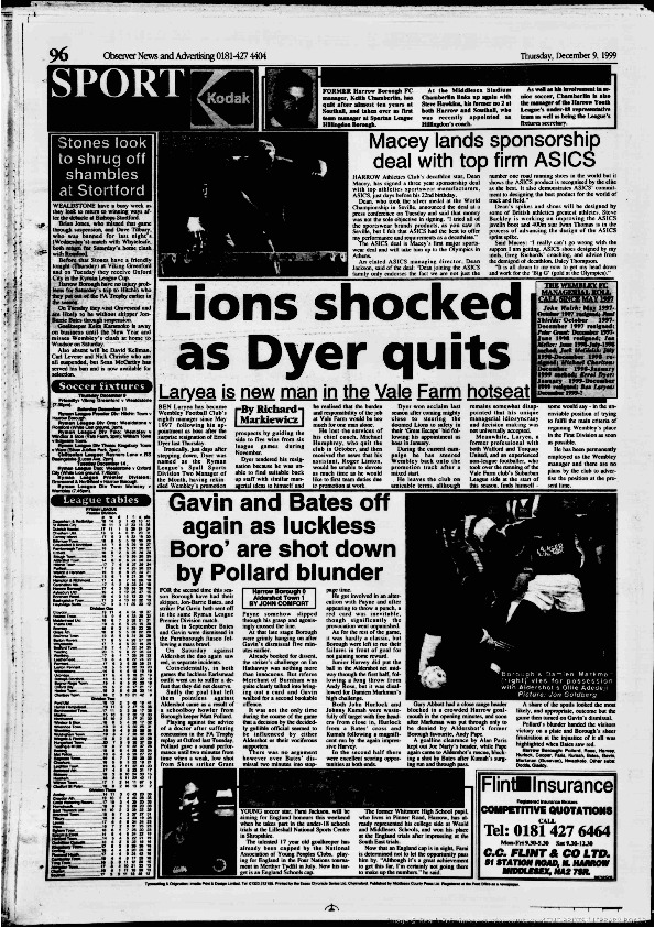 Harrow Observer -Sport – Season- by-Season – 1999….